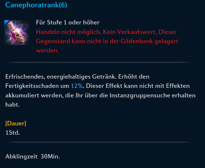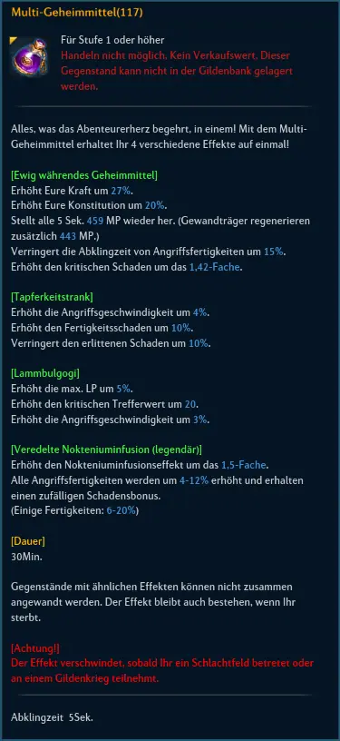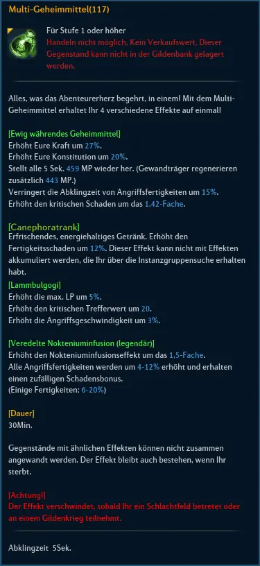 Ein weiteres Multi Geheim Mittel, welches einen Cannephoren buff hat. Dieses weitere Multi wird dann die gleiche Verfügbarkeit haben wir das bisherige, so braucht man nicht extra Buff-Tränke einwerfen, sondern kann direkt das nehmen was man benötigt.