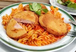 Nudeln mit Tomatensoße und Jägerschnitzel