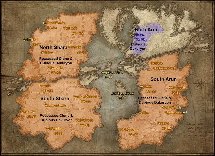 - Large glowing possessed Dakuryon clones can be found in South Arun and Shara overworld