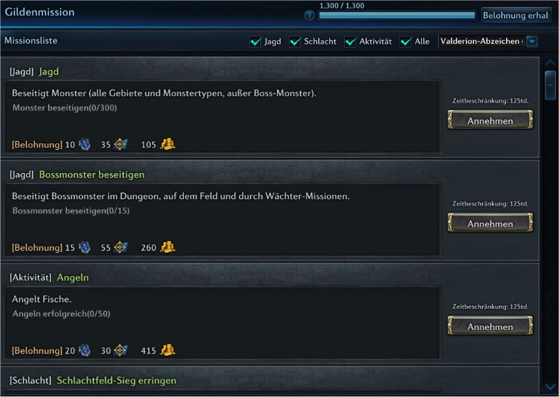 Wir sind eine kleine Gilde und machen die Gildenmissionen. Nun wollte ich wieder welche annehmen aber da steht "Ihr habt bereits das maximum an Valderion-Abzeichen erhalten und könnt deshalb keine weiteren Gildenmissionen annehmen. Kann ich die Abzeichen dann irgendwo einlösen? Belohnungskisten haben wir schon eingelöst.
