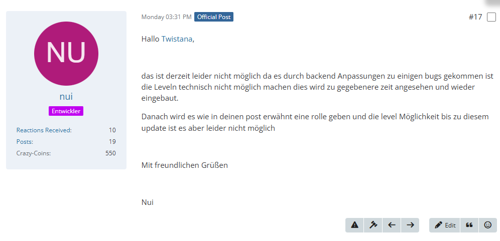 • Nächster offizieller Beitrag