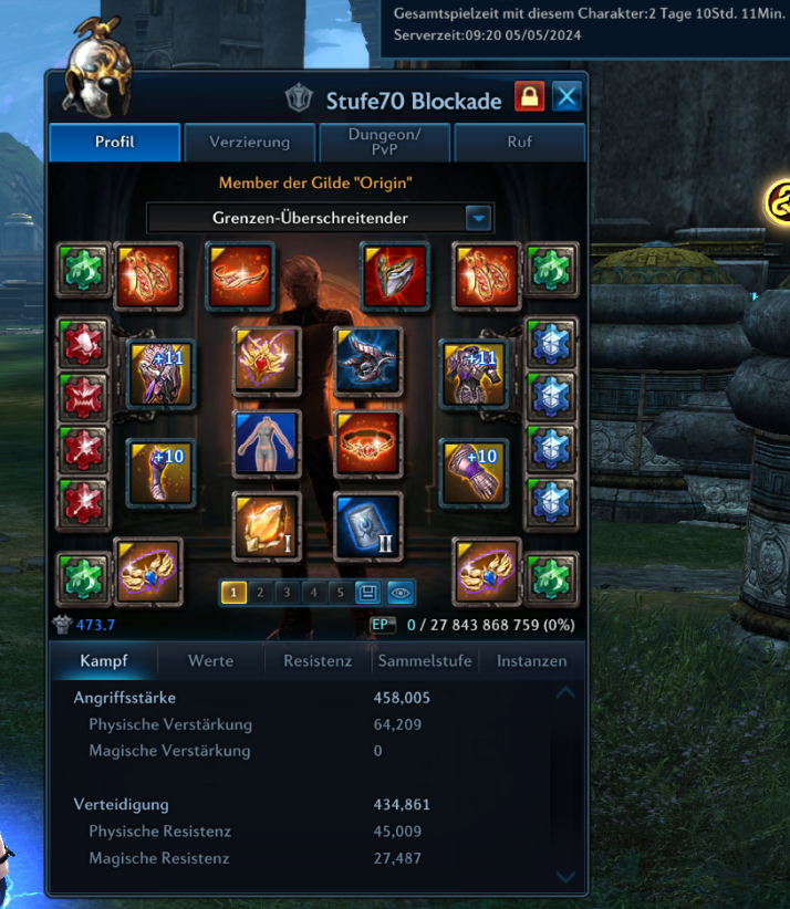 Ich spiele jetzt seit dem 15.04.24 auf dem Server bin jetzt an dem Punkt angelangt wo m.M ein harter Cut des Niveaus und Farmens erfolgt. Ich bin berufstätig, habe Familie mit Haus und Hof und spiele daher unter Woche ca 2h-3h Abends und am Wochenende circa 4-5h aktiv. Rest ist angeln und Bamaramakisten öffnen.