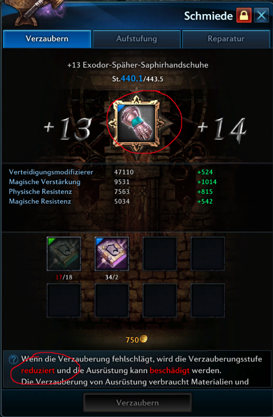 Ab +10 kann das gear beim Upgradeversuch fallen, auf minimal +9