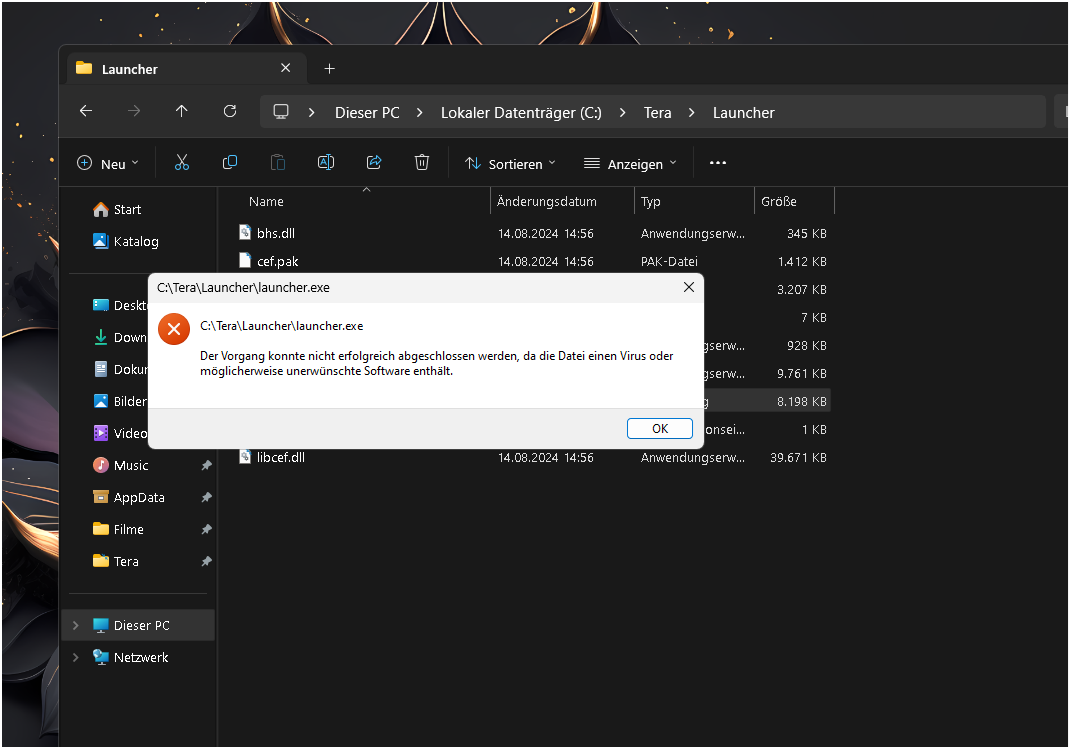 - Überprüfe, ob sich der alte Launcher im TERA-Ordner befindet. Wenn ja bitte lösche diesen.