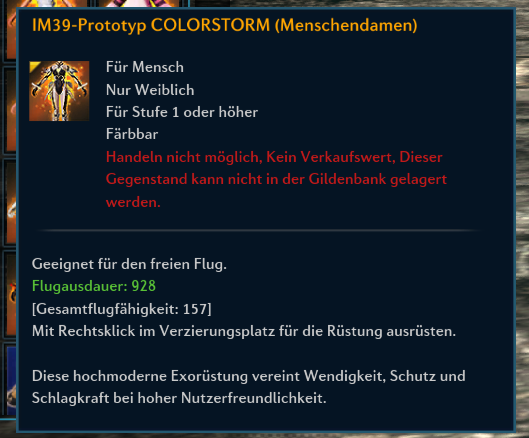 Moin, der Freie Flug, den man für das Nutzen von den Prototyp Kostümen o.Ä. zum fliegen braucht, wird bei mir nicht in den Reitfertigkeiten angezeigt.
