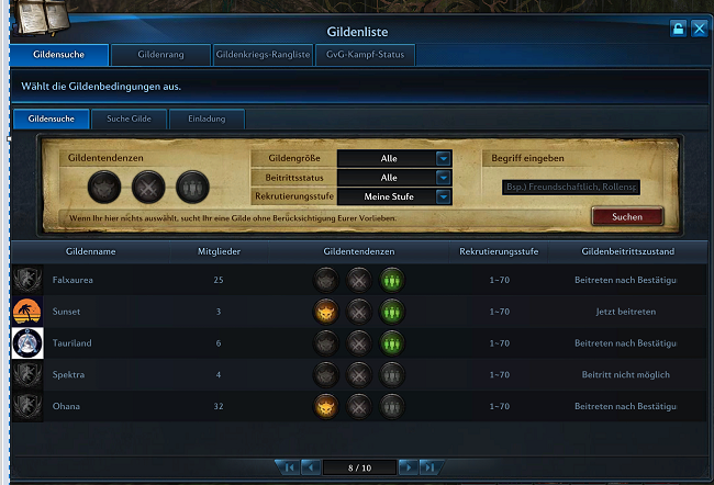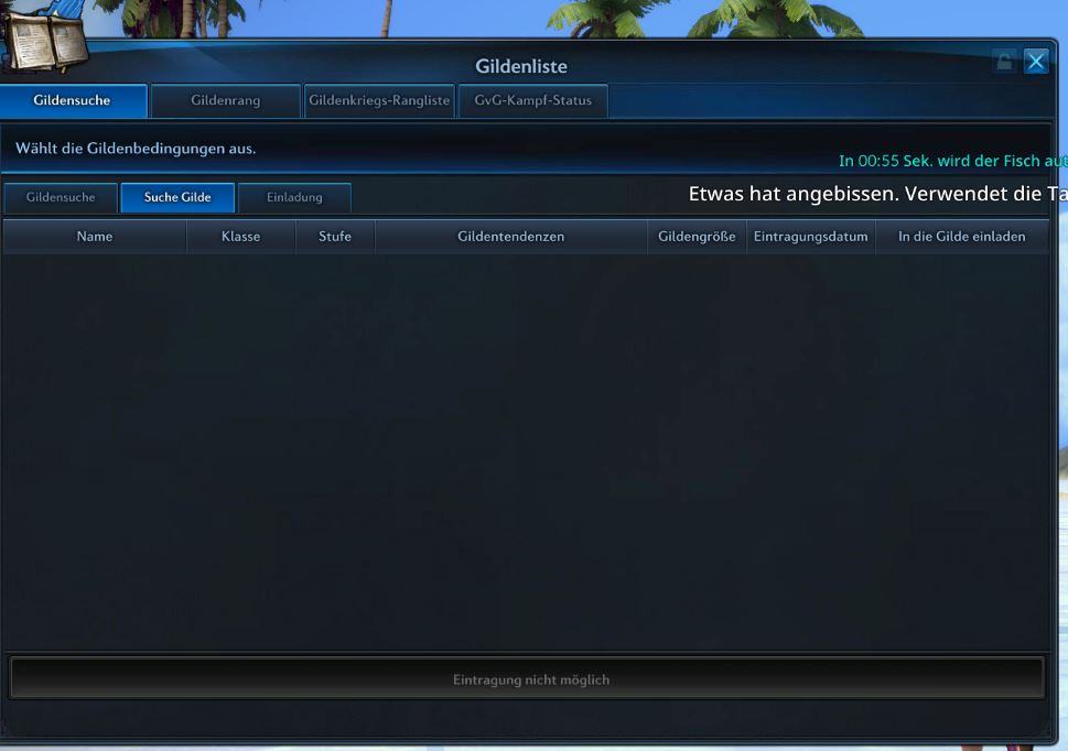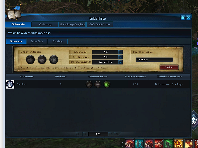 Schau mal die Bilder an, ob du auch nichts im Reiter "Gilde Suchen" eintragen kannst?