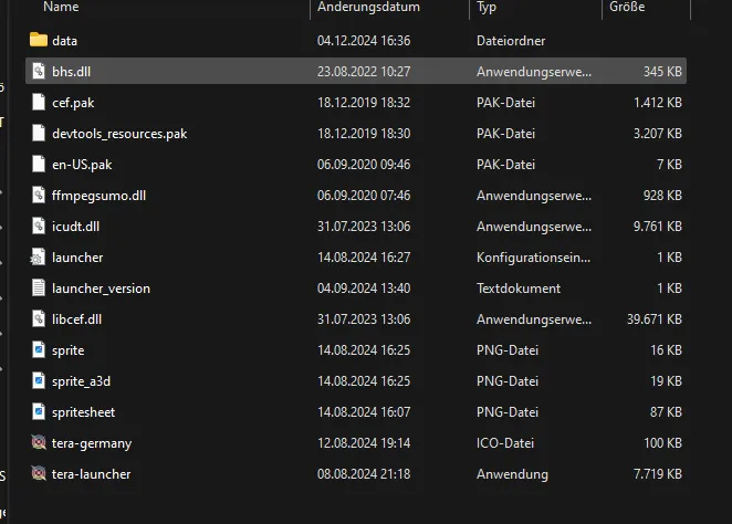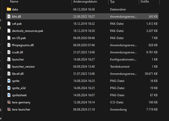 du bist im Launcher Ordner musst aber in denn TERA Ordner wo das spiel liegt