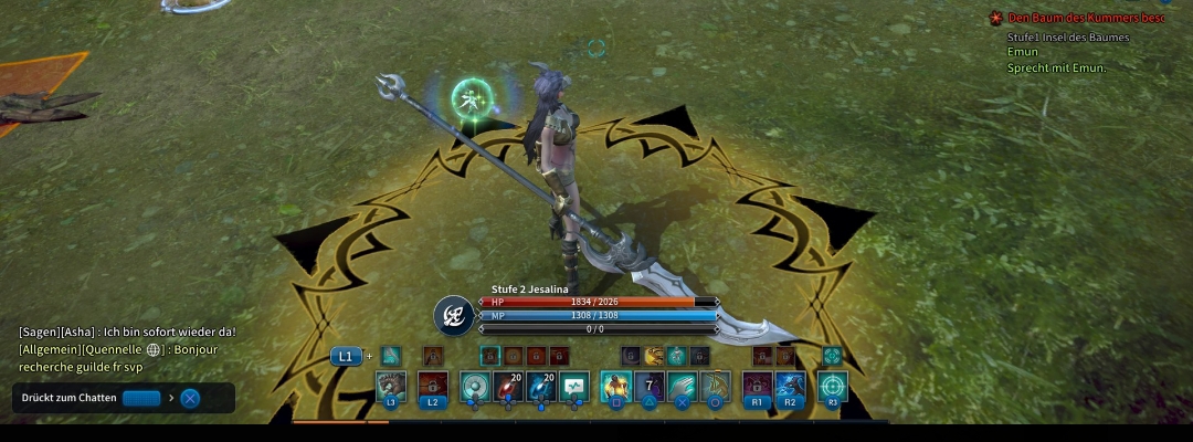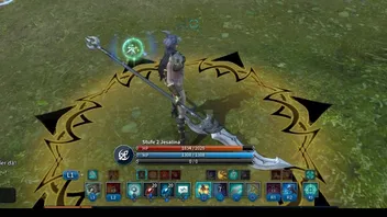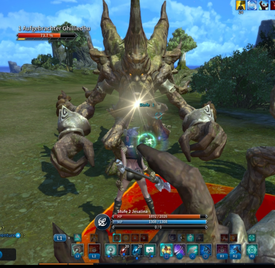 Der gelbe Kreis erscheint, wenn ich meinen Standardangriff (Magishieb) bzw den Ätherhieb ausführe.