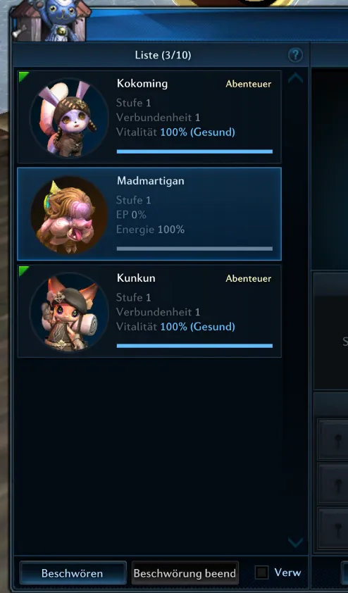 Erst wenn ich weitere Begleiter/Partner mit der Fähigkeit des "persönliches Inventar" aufnehme, dann werden auch weitere Reiter im "persönliches Inventar" bis zum Max angezeigt.
