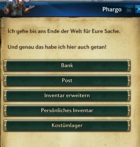 Habe ich noch kein "persönliches Inventar", bedingt durch LV, dann wird beim Bankier auch kein "persönliches Inventar" angezeigt.