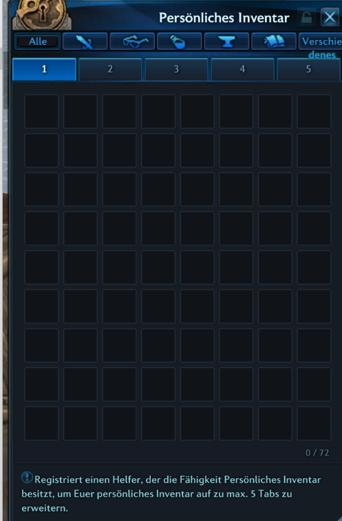 Also einmal ein Persönliches Inventar freigeschalten bleibt es auch :)
