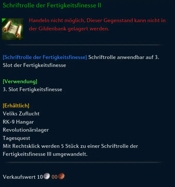 Schriftrolle der schnellen Wiederbelebung wäre super wichtig für neue Spieler und Spieler die Dungeons üben wollen, so könnte man viel besser die Dungeons lernen, wenn man nach jedem Wipe die Rollen wieder nutzen könnte und mit einem Wipe resetten.