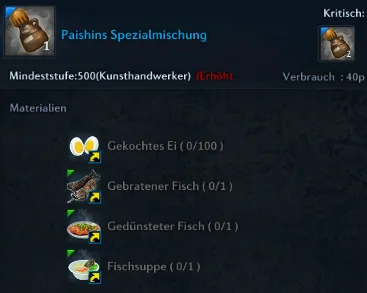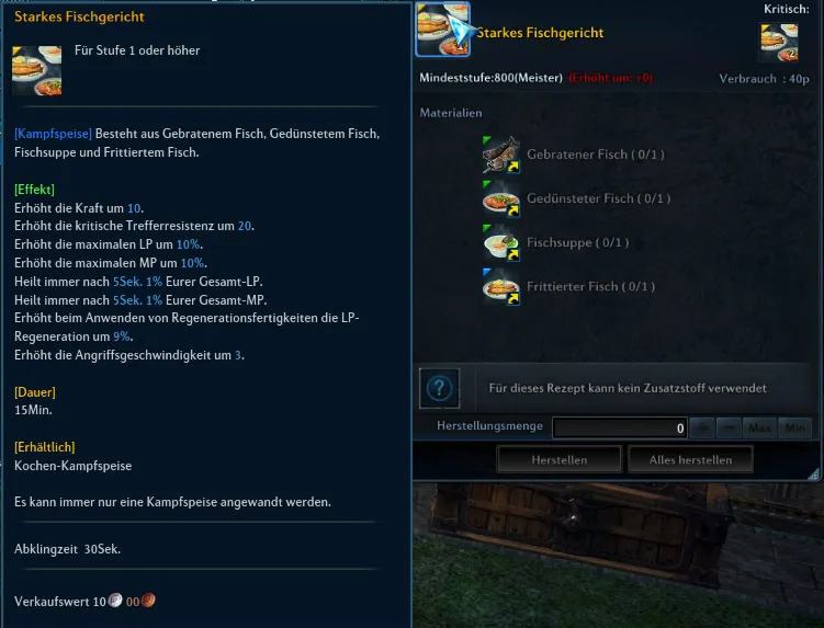 1x "Starkes Fischgericht" = 233 Gold
