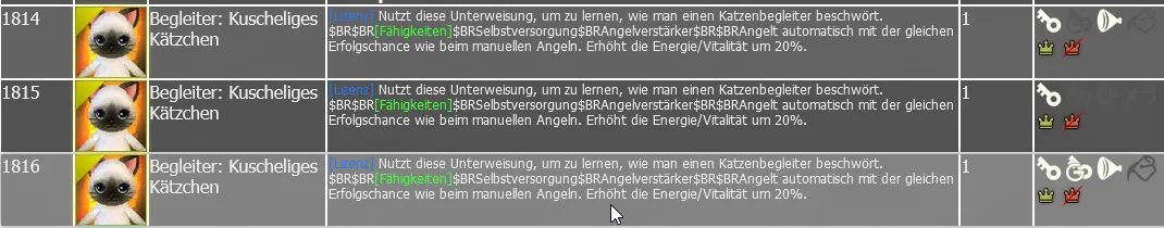 Kann so eine Ausblendfunktion irgendwie programmiert werden?Hier habe ich leider nur ein Beispiel beim Fischen - aber um diese Icons geht es. Bei sehr vielen geöffneten Kisten, ist die Liste sehr lange sichtbar. Alle 3 Sekunden ein Icon.