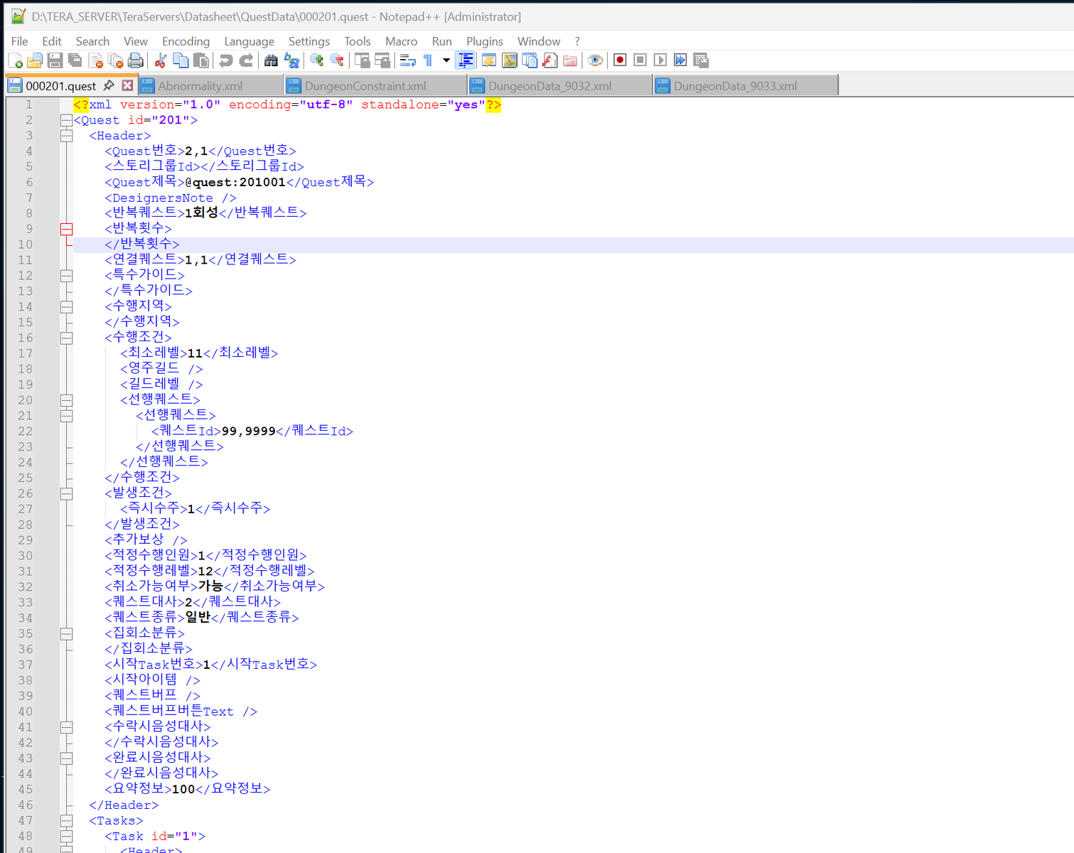 Die Namen der Items und die Story sind serverseitig hauptsächlich oder gar nur in koreanischer Sprache. Variablen und numerische Werte sind in ISO 8859-1 (Latin 1, westeuropäisch).
